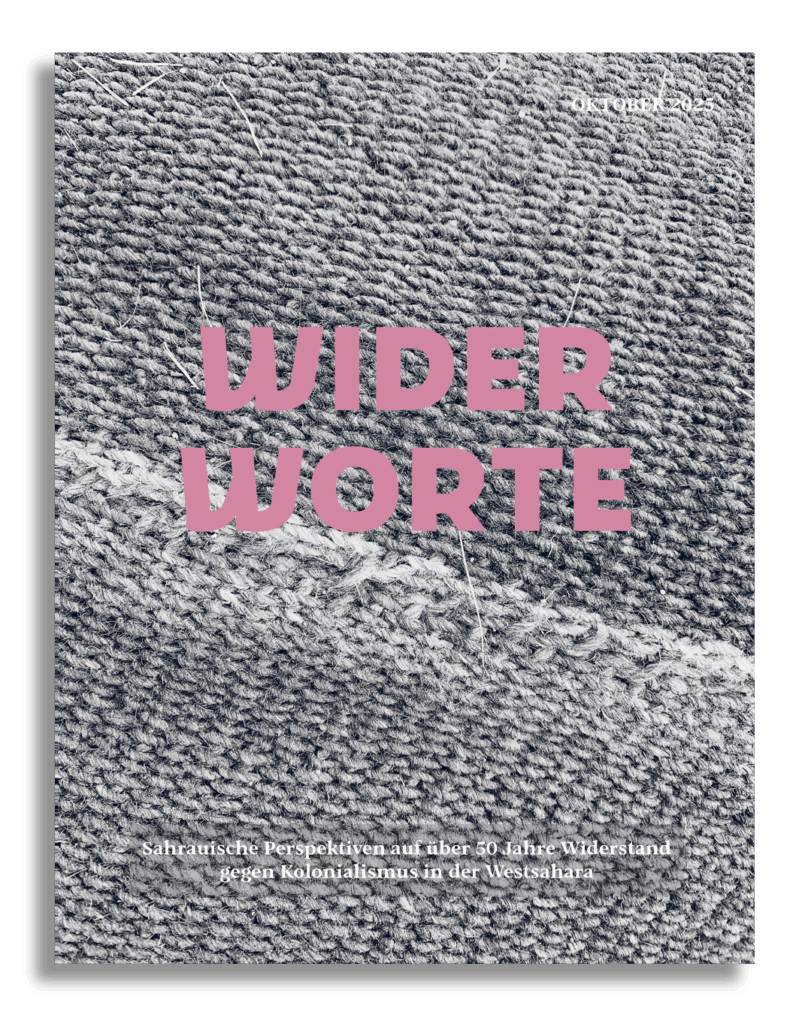 WIDERWORTE ist ein Zine über sahrauischen Widerstand gegen koloniale Besatzung – mit Stimmen aus den besetzten Gebieten, den sahrauischen Camps in Algerien und der Diaspora.